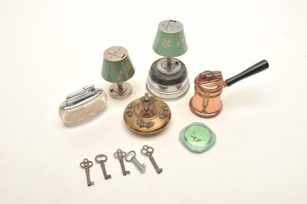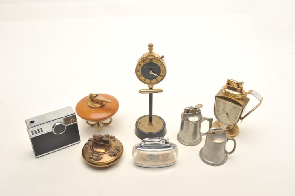 Lot 987 Lot of vintage table lighters and misc. tobacco accessories by makers like Evans, Swank, Ronson, R
