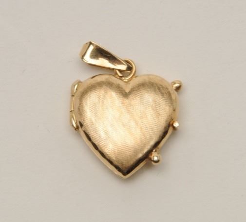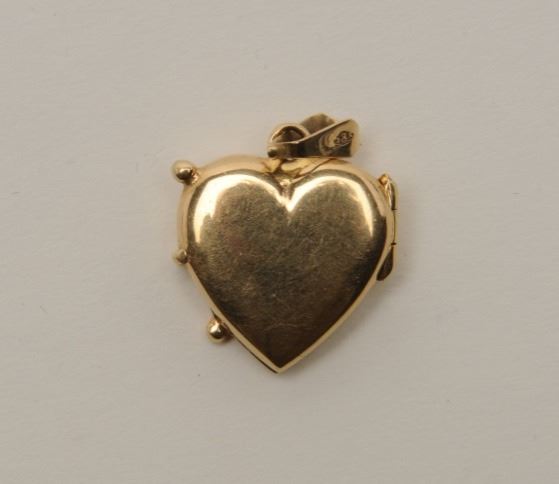 One 14k heart shaped locket weighing 5.73 gms. Est. $300-$600.