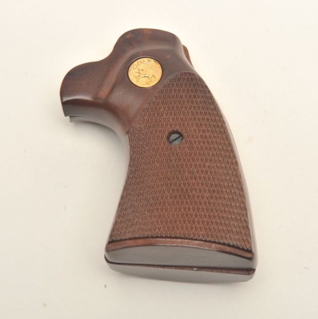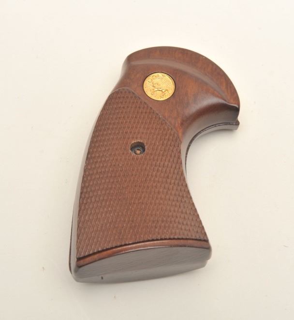 Pair of Colt Diamondback DA revolver checkered wood medallion grips in overall very good to fine condition. Est.: $50-$75.