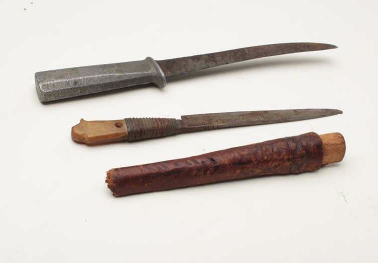 Lot 1049 Lot of two WW II era misc. “in theater” knives, one with an aluminum grip off a Japanese Zero airp