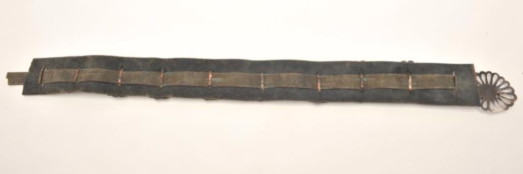 Lot 1060 Early concho belt circa 1890-1900's with 8 conchos and buckle. Sand cast and all natural nuggets.