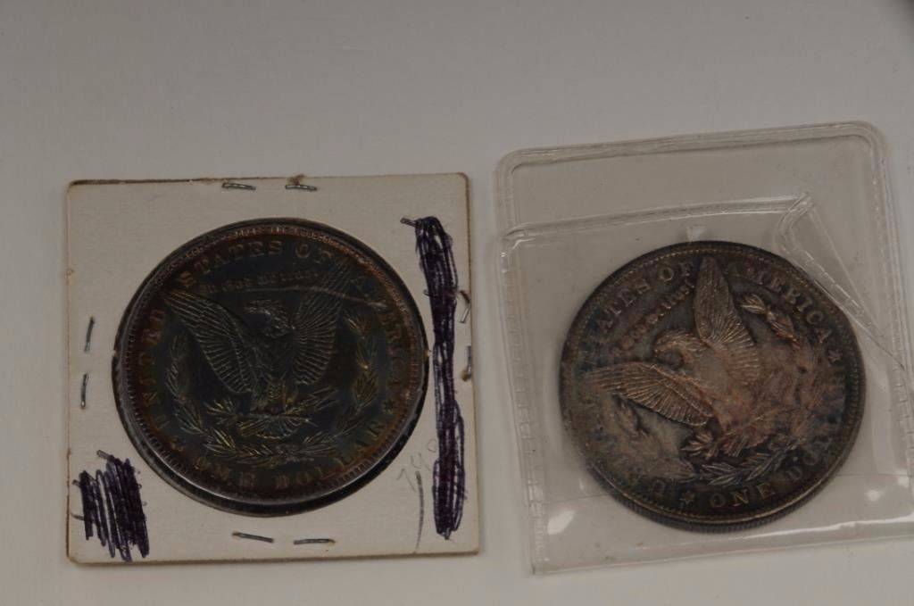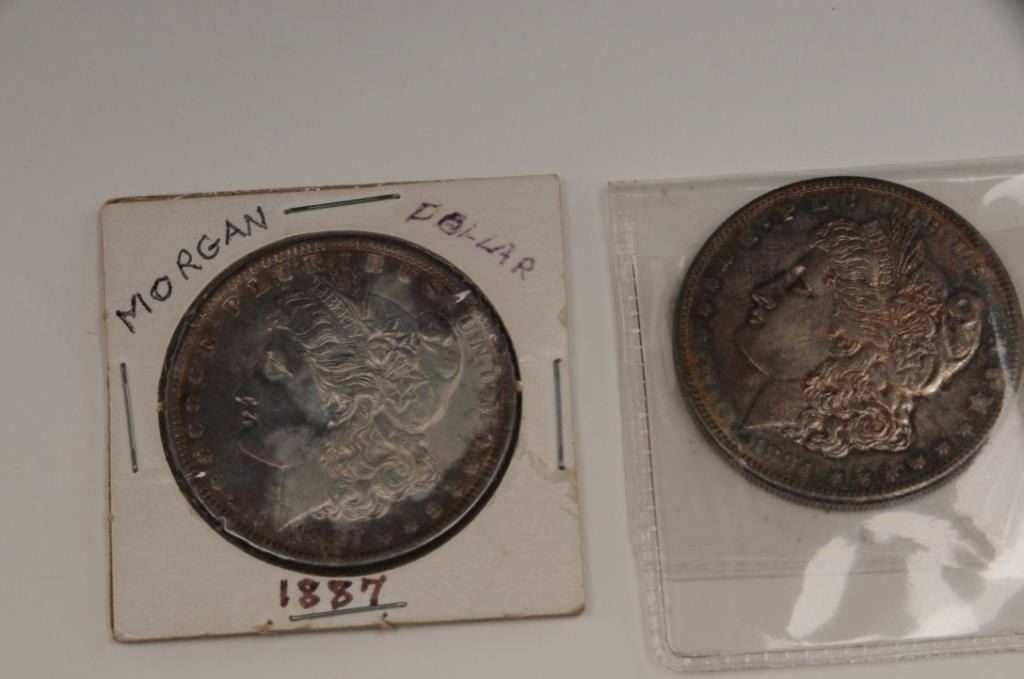 Lot 1061 Lot of US coins. 1. 2 Morgan Dollars- 1887 toned, not graded, A-U to UNC, 1884 toned, not graded, A