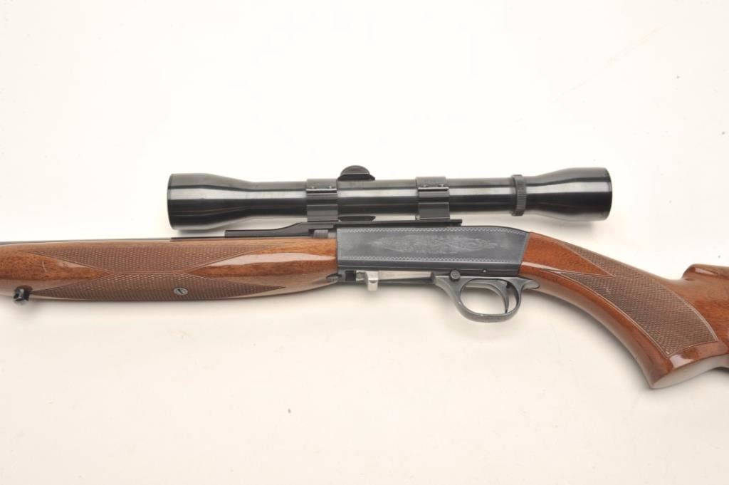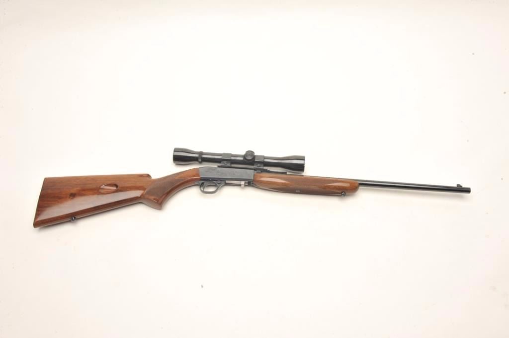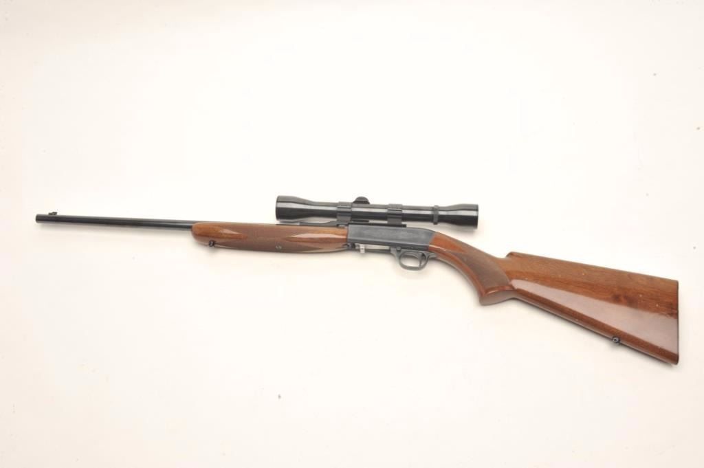Belgium Browning Semi-Auto rifle in .22 caliber with weaver scope and mounts, S/N 9T11726. In near fine used condition with minor marks in stock. (Modern) Est.: $300-$600