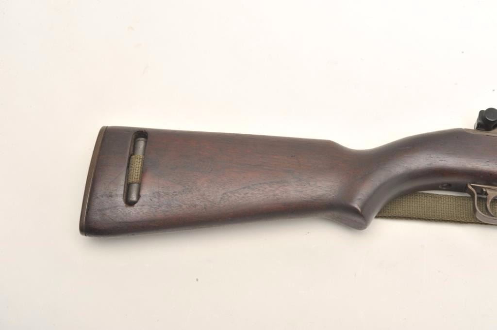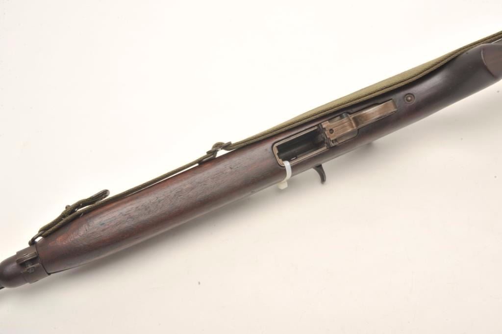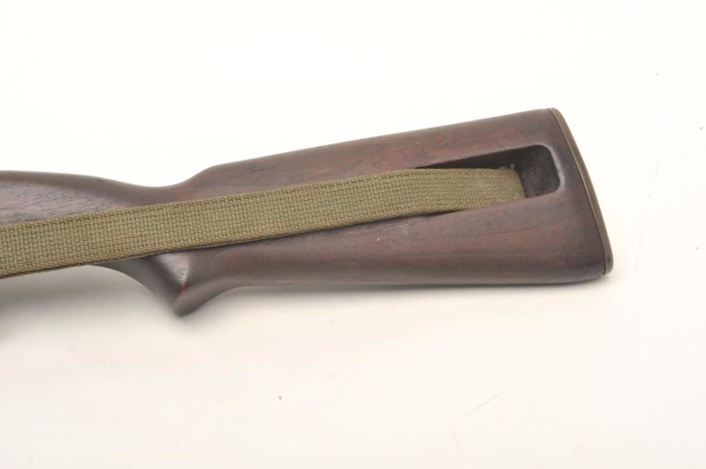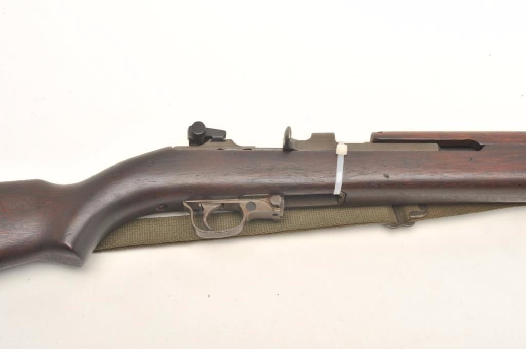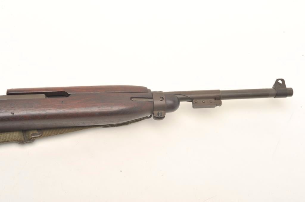 IBM made M1 carbine in very good plus condition as arsenal upgraded in Korean era, S/N 3837721. The barrel is also marked IBM and dated 11-43. R.I.A. cartouche with E.B. inspector’s initial visible. No “P” proof inthe stock. The wood is also at least very good. No import marks. Bright bore. A collector’s grade veteran of two wars. (C&R) Est.: $800-$1600