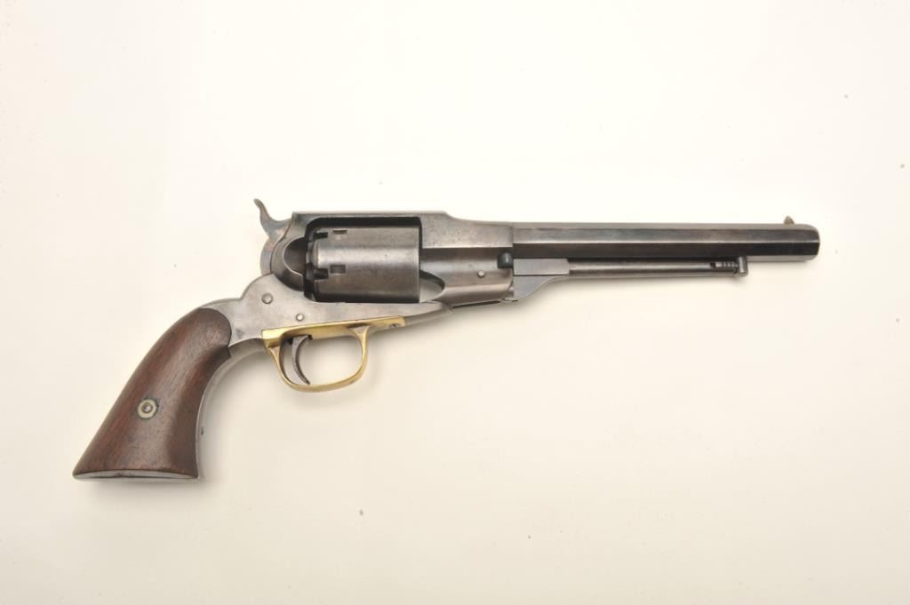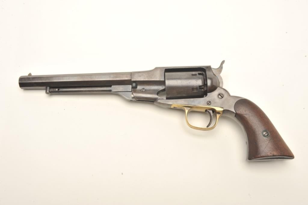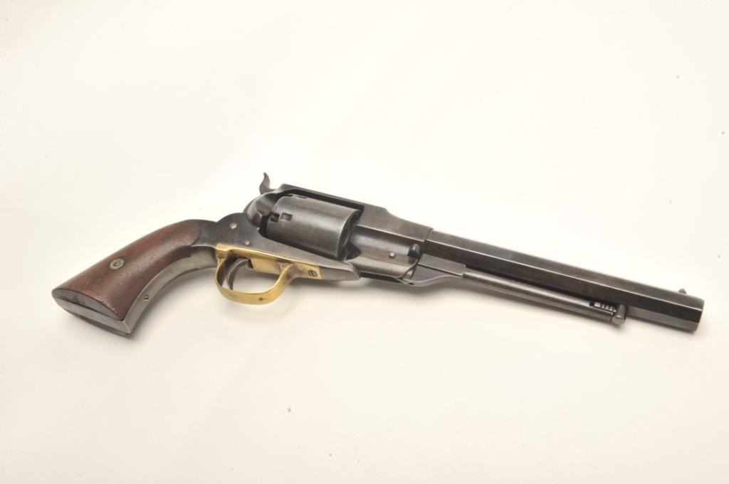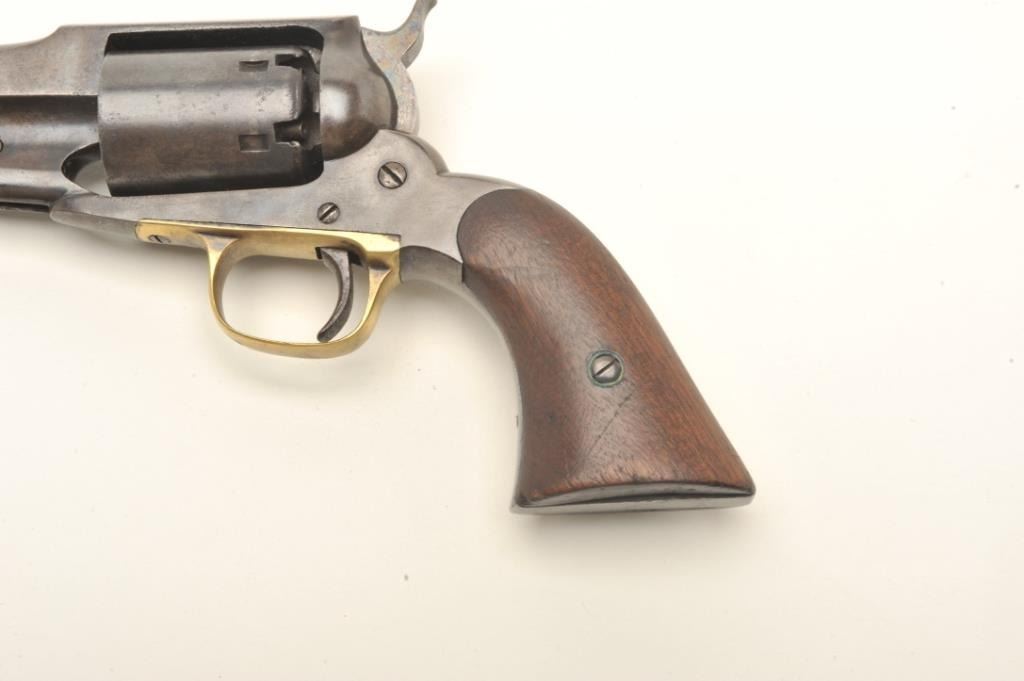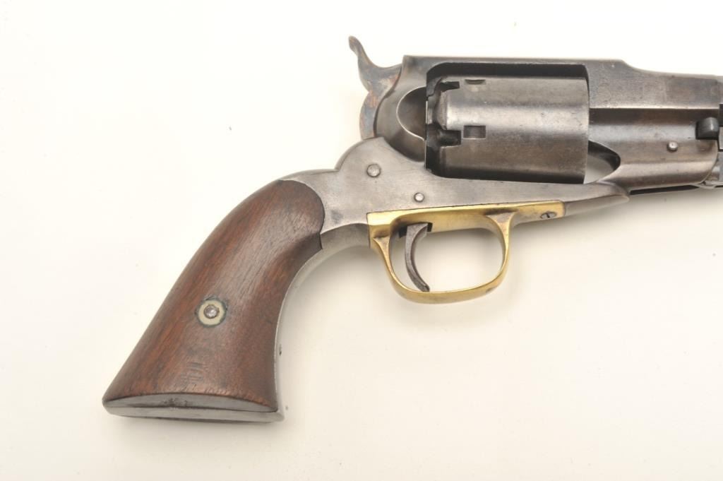 Remington Beals Navy percussion revolver, .36 caliber, 7.5” octagon barrel, re-browned finish, wood grips, S/N 5581, in overall good to very good condition with a crisp action, sharp markings and very good grips.(Antique). Est.: $600-$1,200.