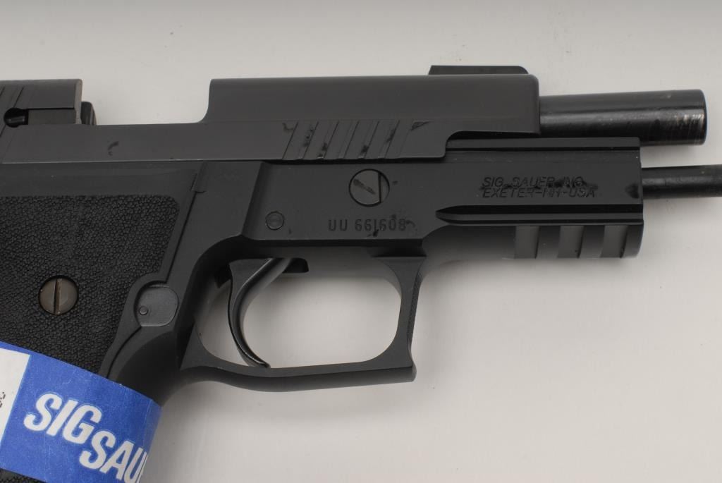 Sig Sauer P226 Semi-Auto Pistol, .40 S&W, 4 ¼”, black finish, night sights, Short reset trigger, accessory rail, S/N UU661608. This pistol remains in like new condition showing little handling and no use. Original Box andmanual included. Consignor will ship original 4 mags to buyer outside of CA. (No CA Sale) Est.: $700-$1400
