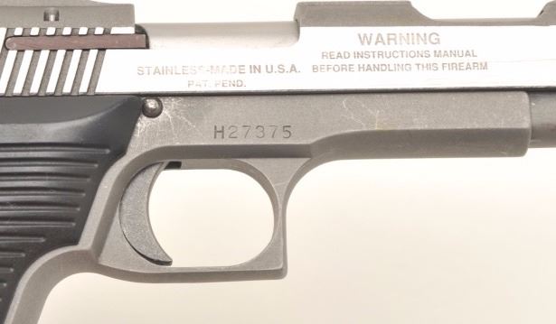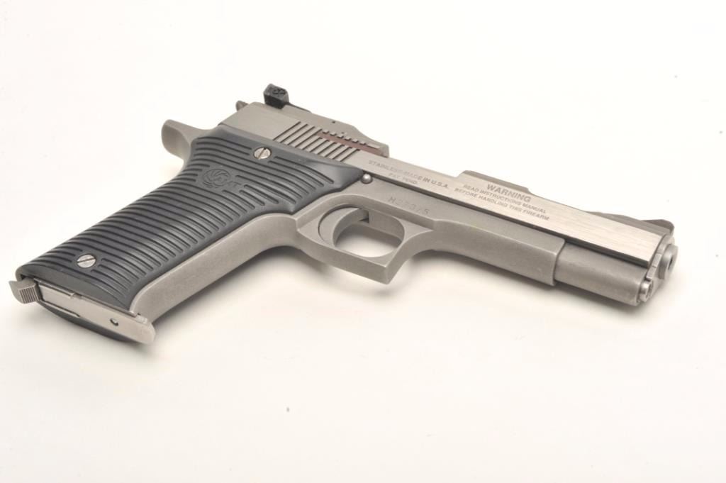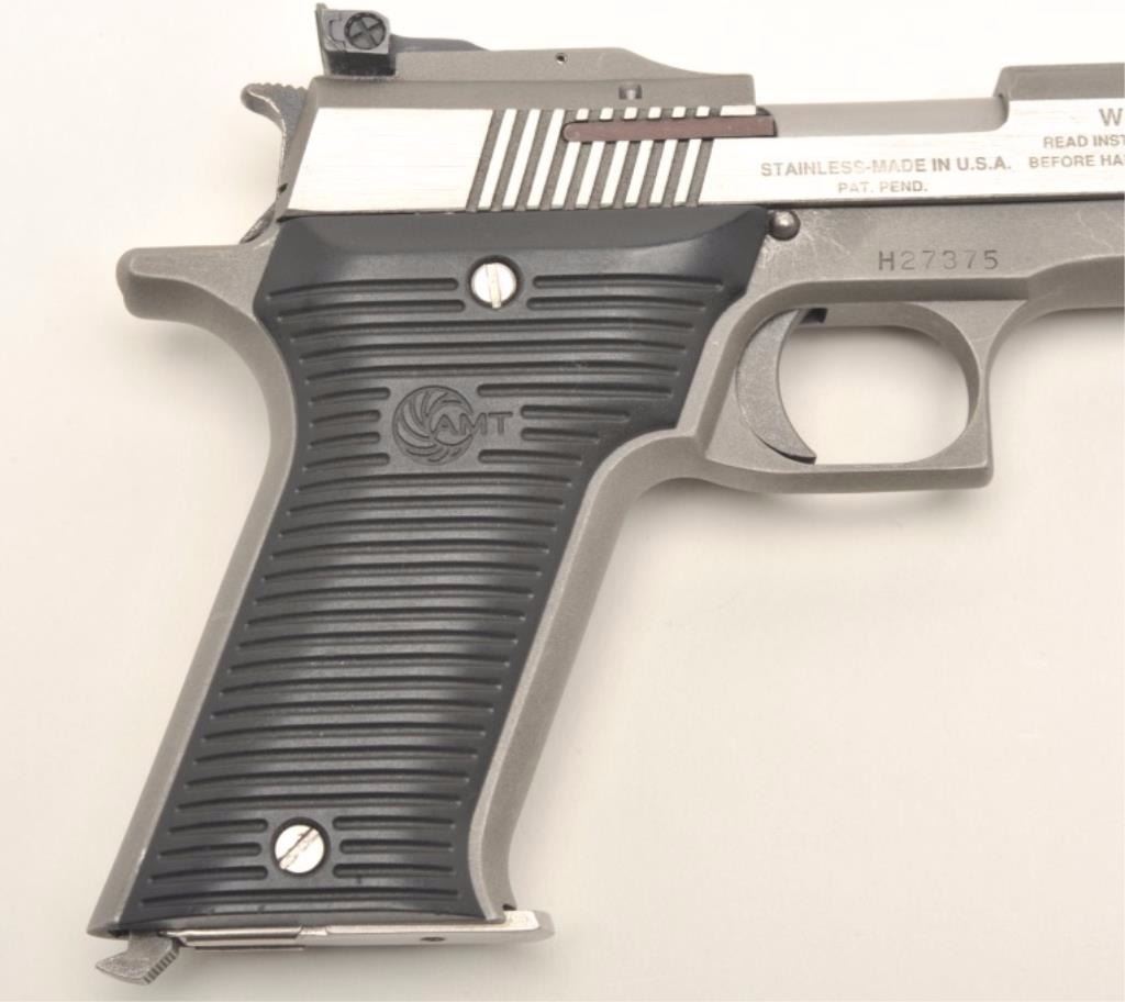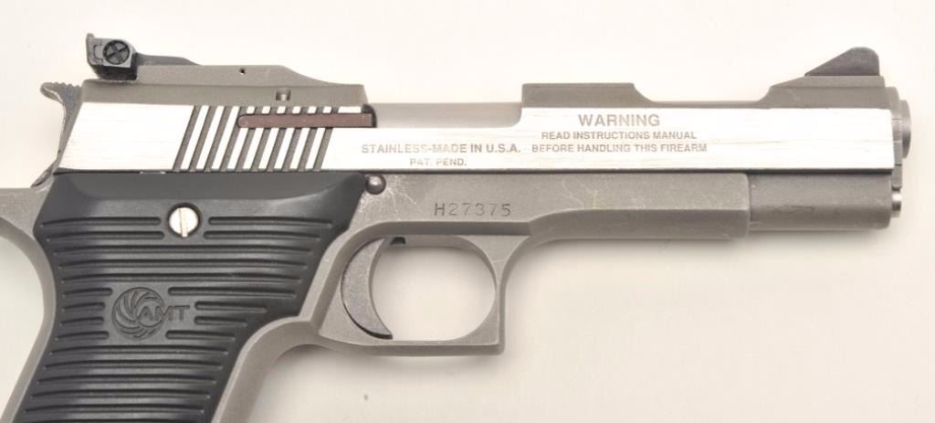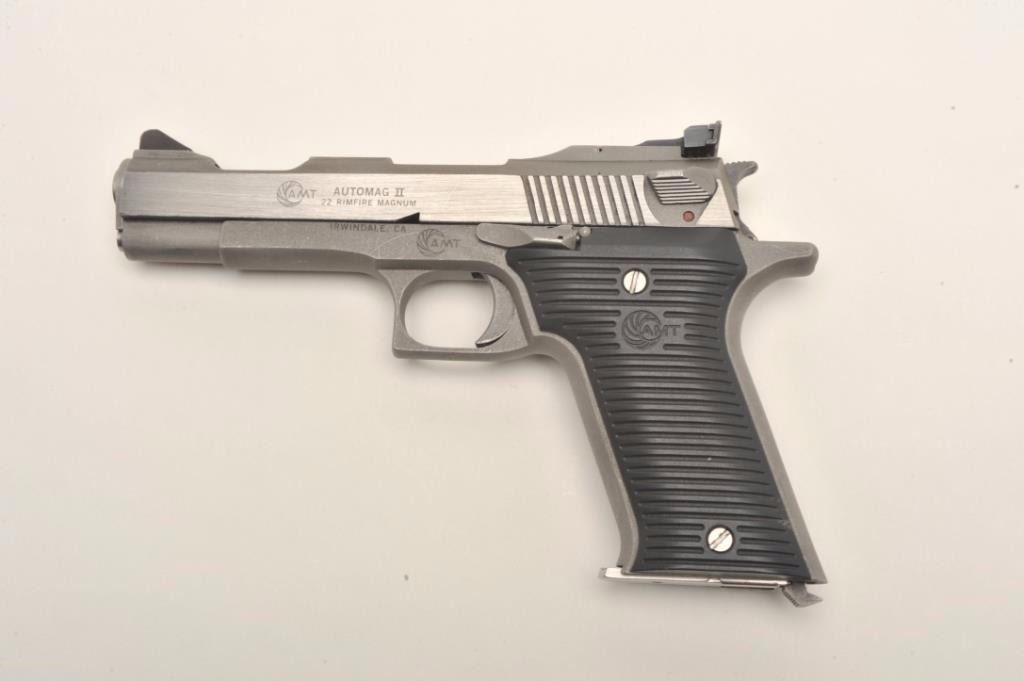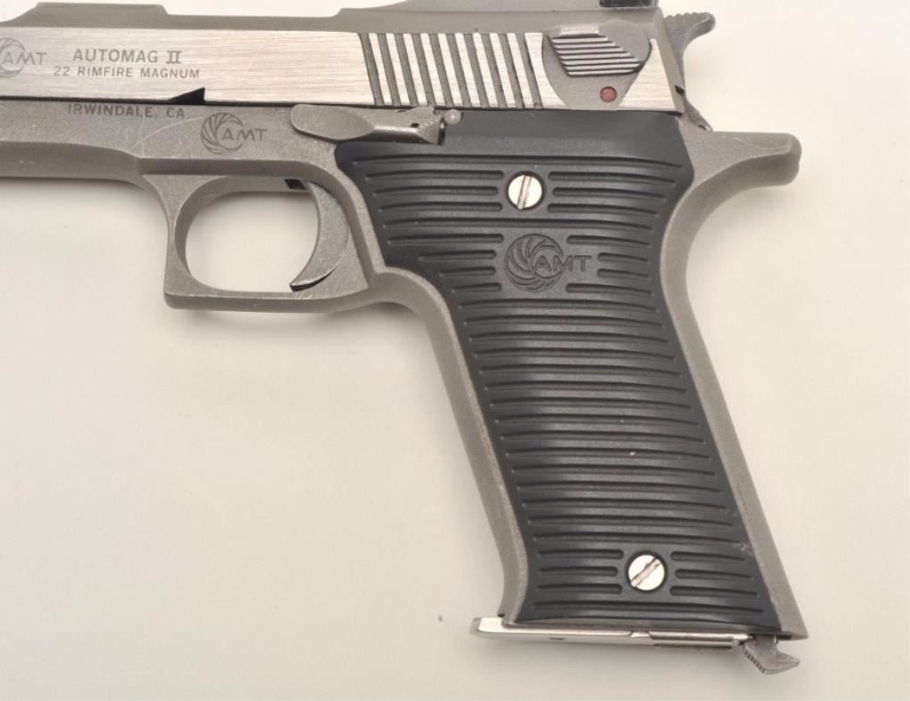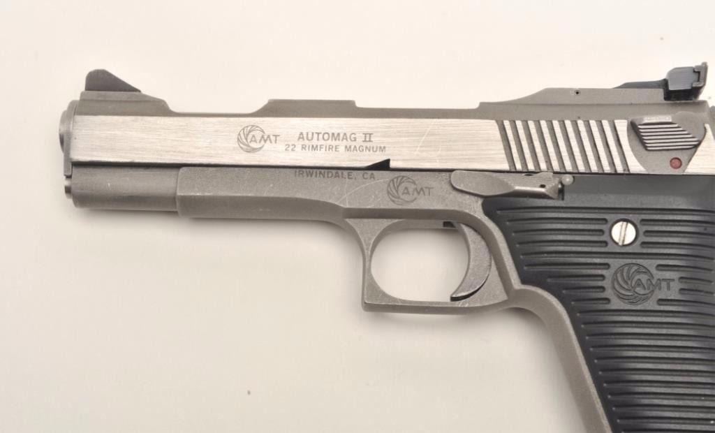Lot 1165 Out of production and collectible AMT Automag II, .22 Magnum, #H27375. Stainless steel, 4 5/8" Bbl