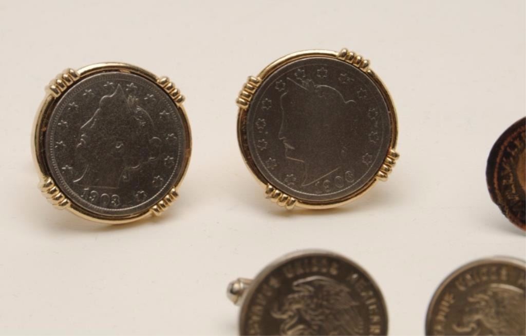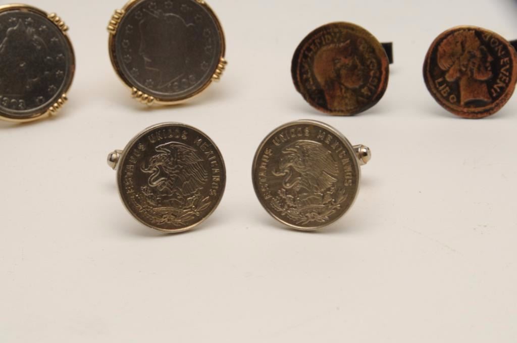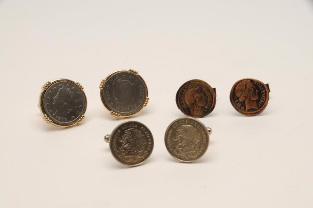 3 pairs of unique coin cufflinks. Est. $100-$200.