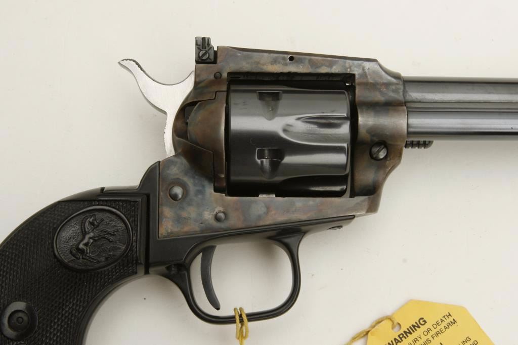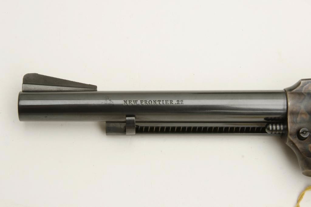 Lot 1190 Colt New Frontier Model single action revolver, .22 caliber, 6” barrel, blued and case hardened fi