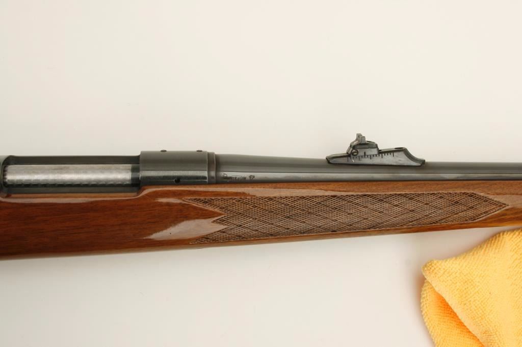 Remington Model 700 bolt action rifle, .30-06 Sprgfd. caliber, 22” round barrel, blued finish, wood stock that has been shortened for 5’ 2” person with an added Pachmayr hard rubber butt pad, S/N B6362973, in overallfine to excellent condition as modified. (Modern). Est.: $300-$600.