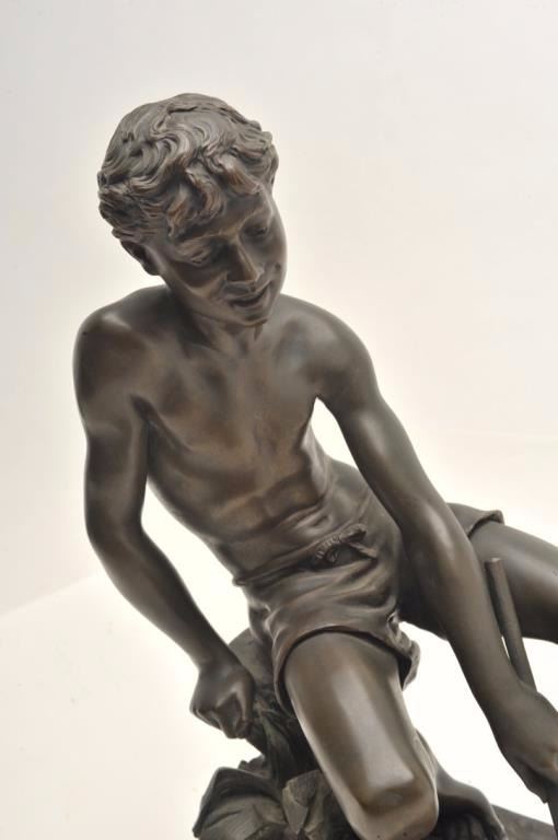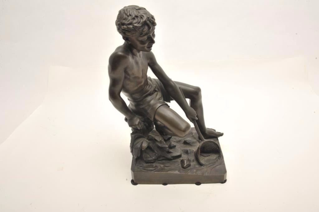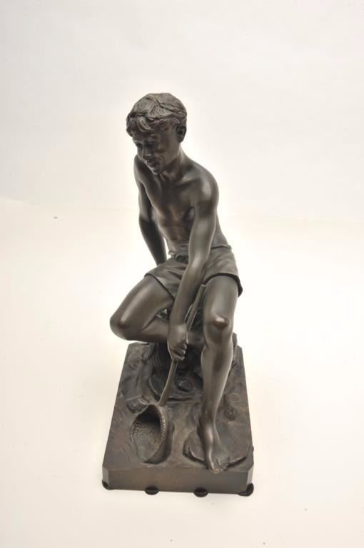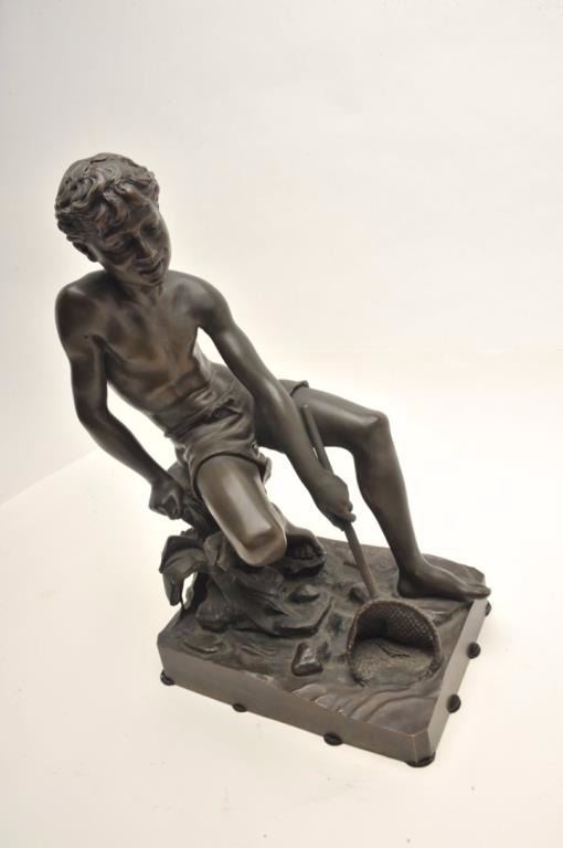 Lot 1267 Bronze of boy with fishing net signed “Guillaume”, approximately 17” in height, 10” long and 7” wi