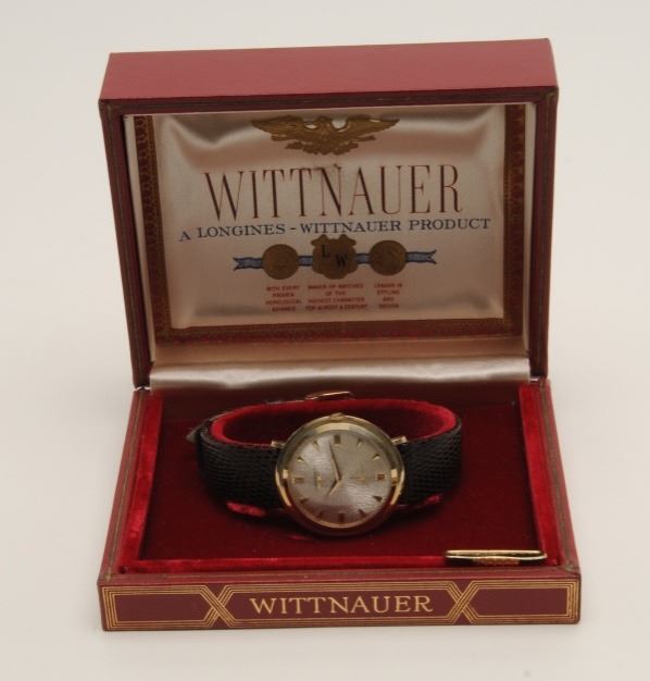 Lot 1288 Vintage Wittnauer 14K man’s watch in box. Circa 1950s-60s. Excellent condition. Est.: $300-$600