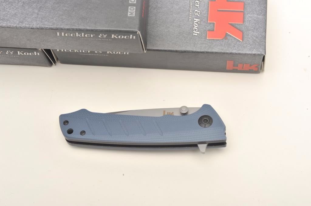 Lot 1298 Lot of 4 HK (Heckler & Koch) folding knives, each new in a factory cardboard box with instructions