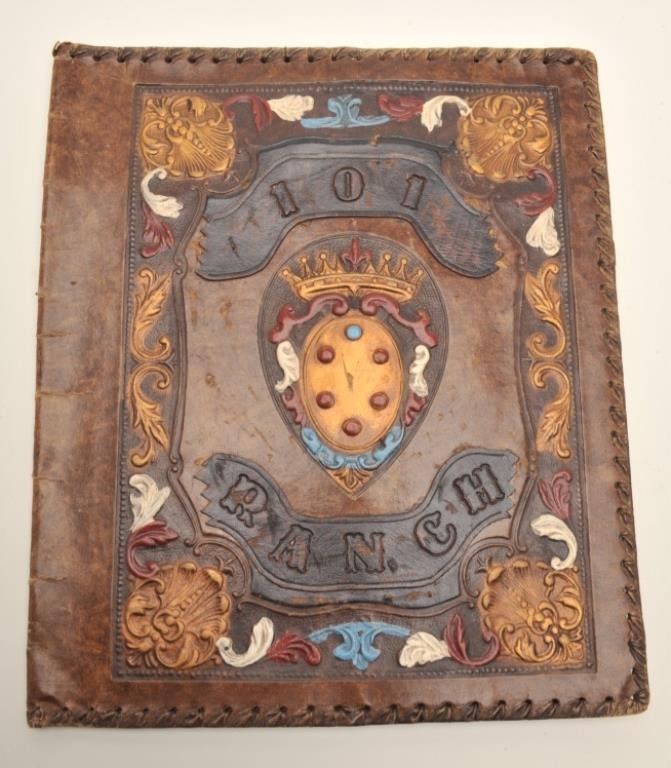 Lot 1314 Lot of 2 items including a carved leather portfolio with “101 Ranch” on the front and the likeness