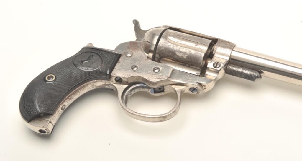 Lot 1335 Colt Model 1877 Lightning DA revolver, .38 caliber, 3.5” ejectorless etched panel barrel, nickel f
