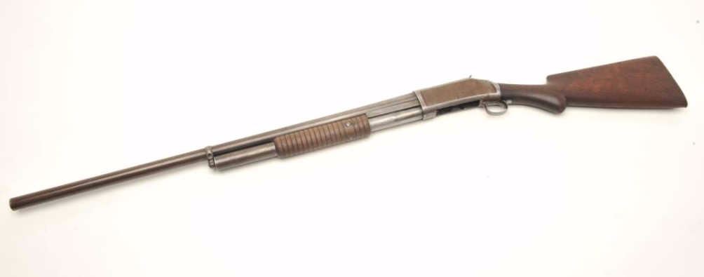 Lot 1347 Winchester Model 1897 pump action shotgun, 12 gauge, 30” barrel, blued finish, wood stocks, S/N C