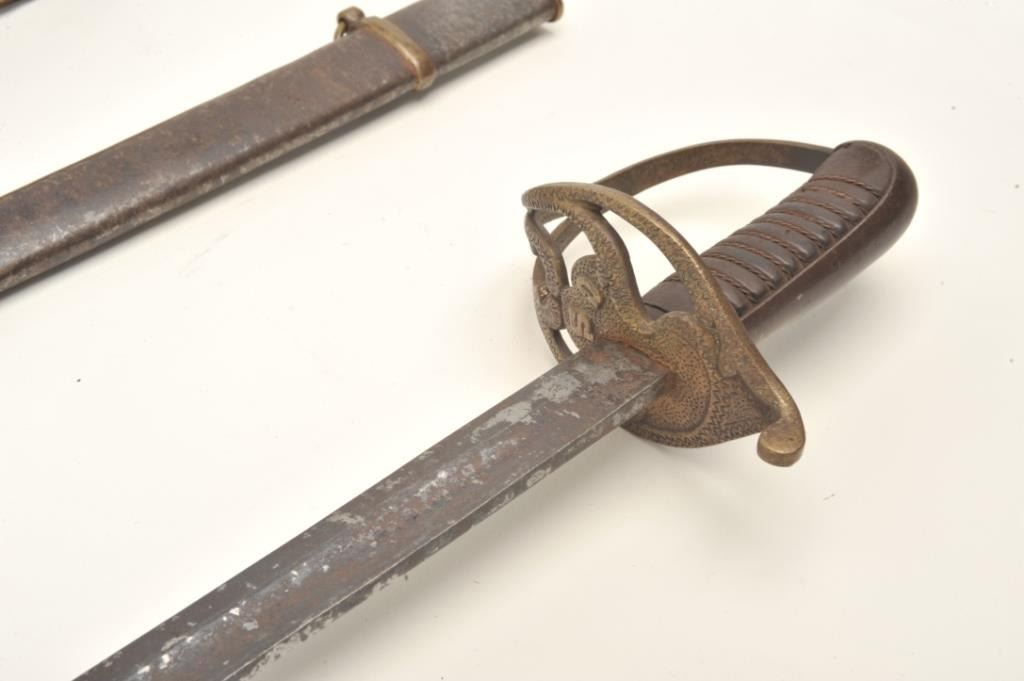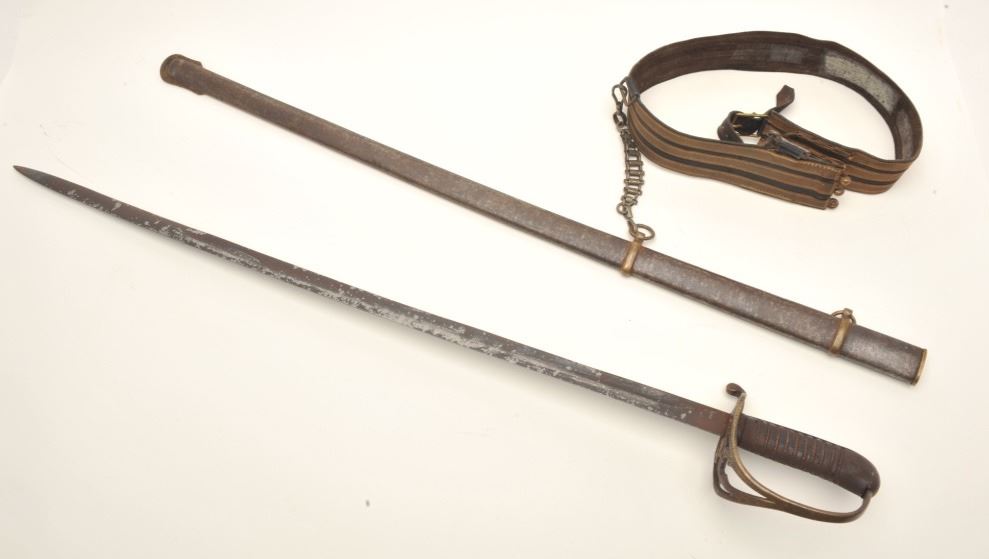 House of Swords 1960’s to 1970’s reproduction of a Confederate sword and scabbard with hanger and belt; for the re-enactor. Est.: $150-$300.