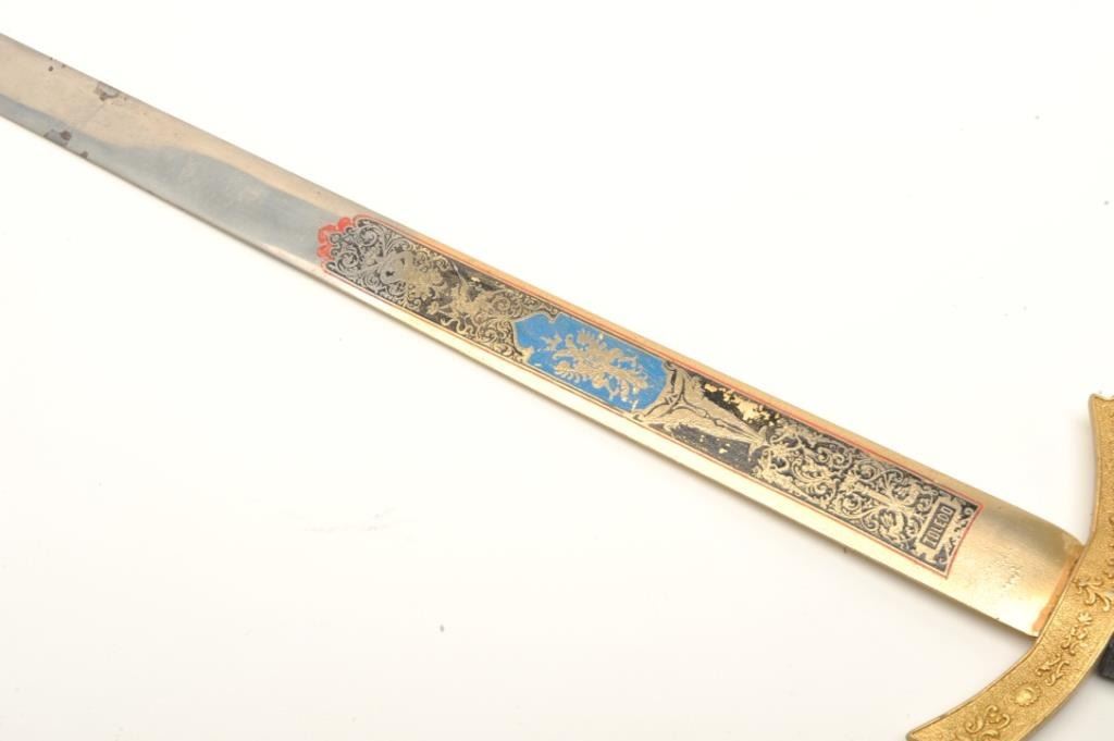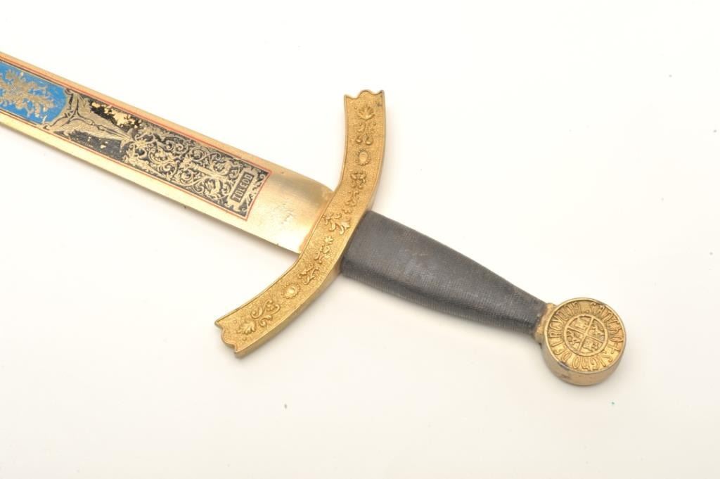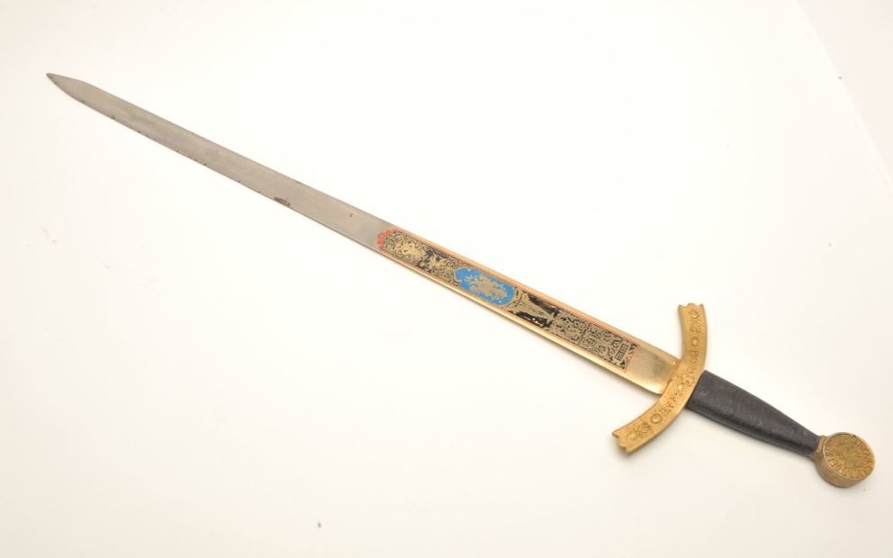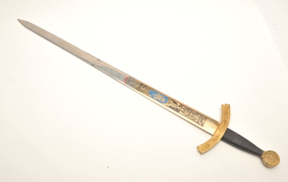 Lot 1376 Toledo marked sword, approximately 40.5” overall with a decorated 33” blade. Est.: $75-$150.