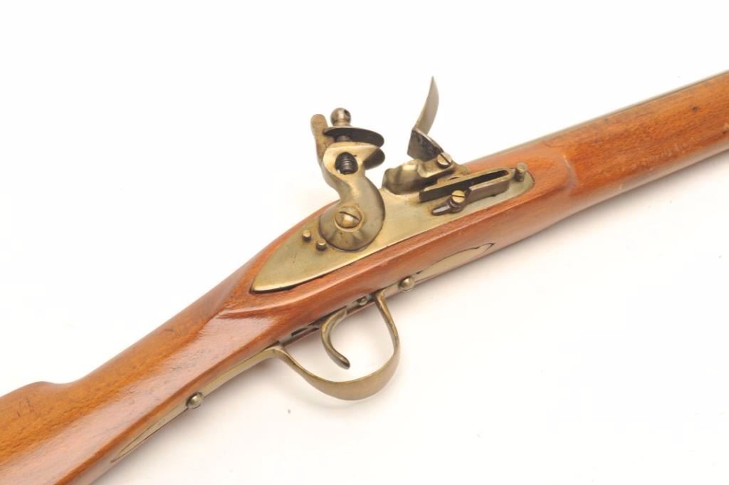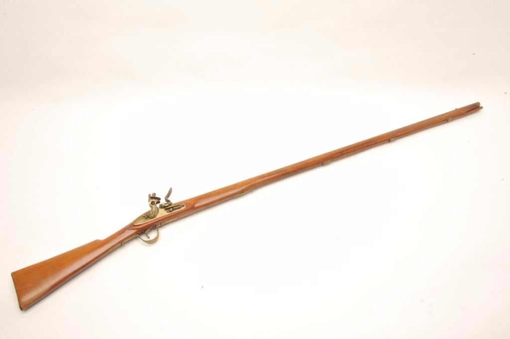 Belgium flintlock trade musket circa late 19th to early 20th century. Approximately 68” overall with a 51 ½” barrel of approximately .60 caliber smooth bore. Plain brass mounts with two screw side plate and marked Belgiumat the breech. In fine to excellent condition showing minor handling, slight storage, and no evidence of use. Mostly traded to Africa but some found their way to N.W., Canada, and South America along with mid-east and orient as guns were a trade commodity world wide that appealed to indigenous peoples. (Antique) Est.: $350-$700