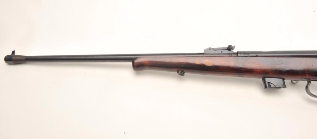Lot 1387 USSR bolt action rifle, .22 LR caliber, serial #A7448. The rifle is in good overall condition wit