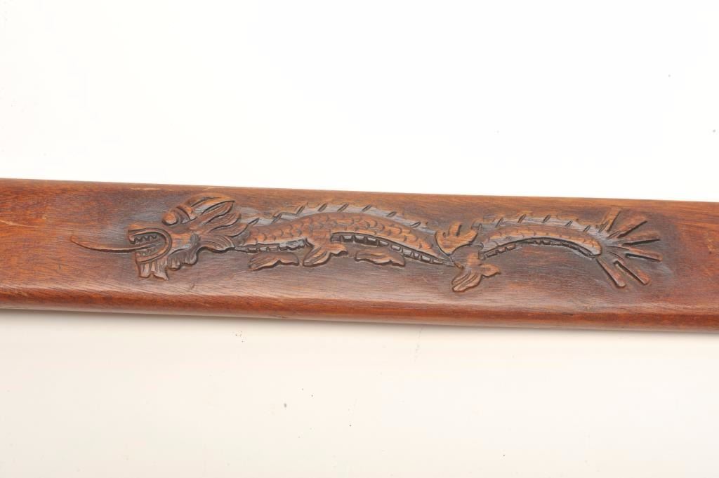 Lot 1391 Modern Chinese sword with carved wooden scabbard, approximately 36” overall with a 28” blade.