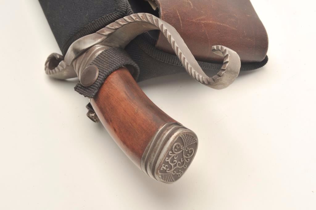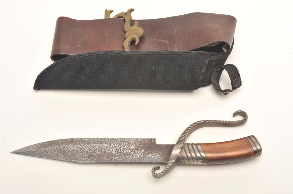 Lot 1396 Theatrical short sword, approximately 15” overall with a 10” blade accompanied by a wide leather b