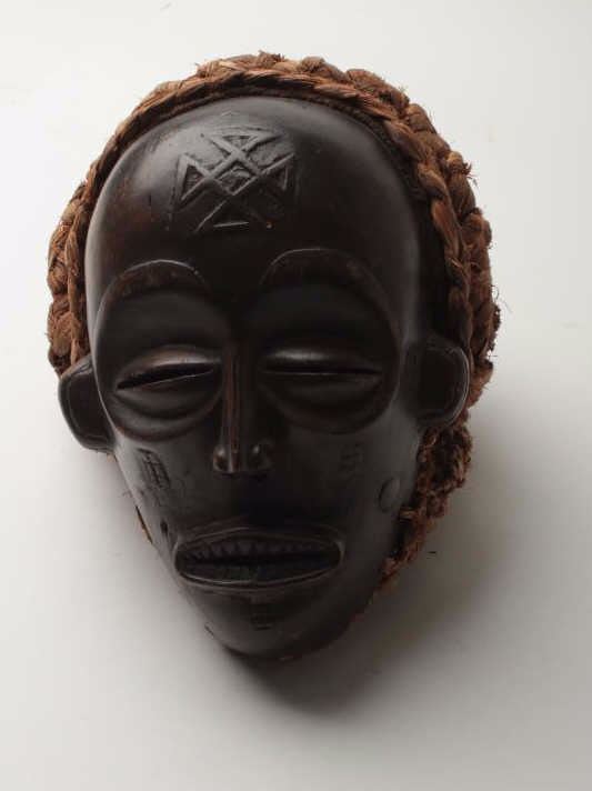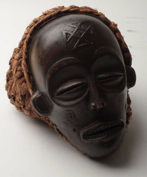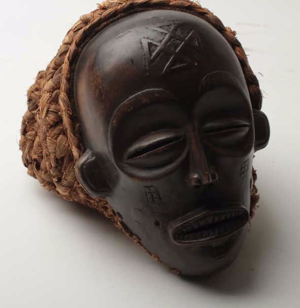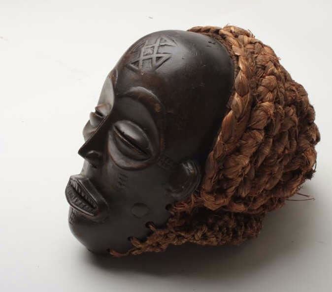 Lot 1783 Early and fine quality carved African mask with simulated hair woven from hemp; appears Chokwe tri