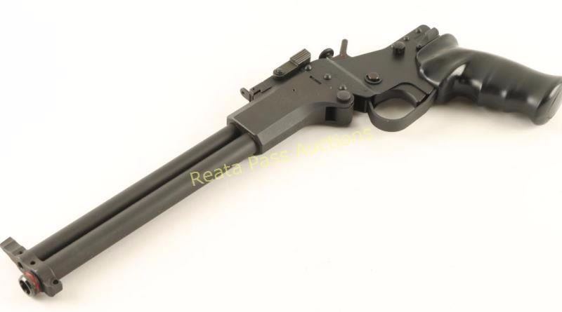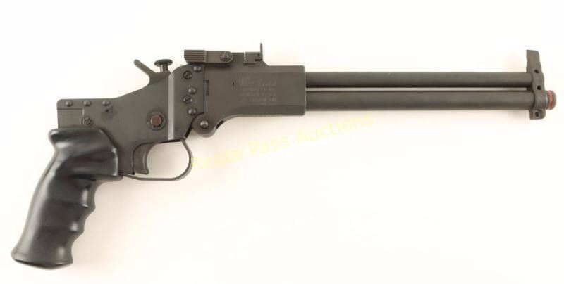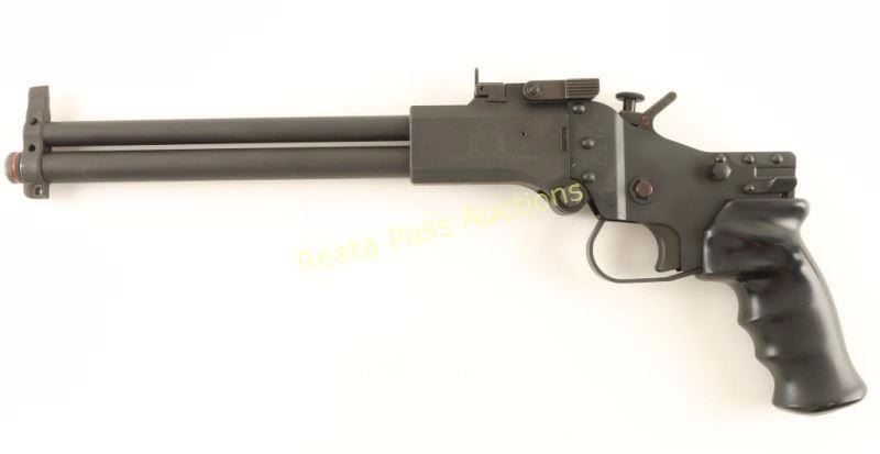 SN: MM 601276-MP Sought after top-break under/over pistol chambered for .22 Long Rifle and either .45 Colt or .410 gauge shells. This unique pistol was introduced in 2002 and has since been discontinued, made in the Czech Republic. Features a black anodized finish, 10" barrels, blade front sight, flip-up rear sight, barrel selector on the hammer, smooth trigger, swivel studs and finger groove black synthetic grip. Pistol exhibits approximately 97% of it's original finish bearing a few light scratches and some edge wear. Action is tight, bores are excellent and synthetic grip is very good+. Condition is excellent. ***Modern Firearm***