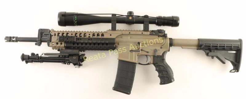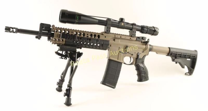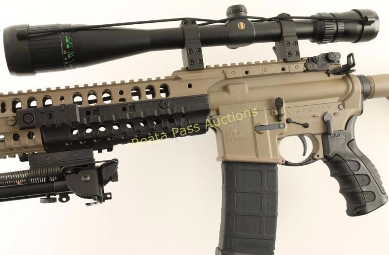 Top of the line ceramic coated semi-automatic AR-style rifle chambered in 5.56 NATO. NGA is a precision arms maker located in Toledo, Oregon who uses an irremovable proprietary ceramic plating that was pioneered for the aerospace industry it is impervious to any corrosion and virtually maintenance free. Features a FDE finish, heavy 14.5" Noveske barrel with a permanently affixed Primary Weapons Systems FSC556 flash suppressor, A.R.M.S. Silhouette #41-B folding front sight, A.R.M.S. #40L flip-up rear sight, Bushnell Elite 4200 6-24x scope, A.R.M.S. S.I.R. SM bi-lever quad-rail handguard, Harris SL bi-pod, 30 round Pmag, NGA single stage 3.5lb trigger with anti-rotate pins, flat top upper with forward assist & shell deflector, M16 ceramic plated BCG, extended latch charging handle, CAA UPG grip and black synthetic 6-position collapsible shoulder stock. Included a Cabela's Tactical soft rifle case with owners manual, shell catcher, two 30 round Cammenga magazines and two 30 round Adventure Line magazines. Rifle exhibits approximately 98% of it's FDE finish showing light wear from the charging handle and marks on the shell deflector. Action is crisp, 1/7 twist rate bore is excellent and stocks are fine. If you are unfamiliar with this rifle it's worth reading up on, there are too many unique features to list in this description. Condition is excellent. ***Modern Firearm***