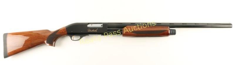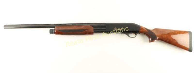 Turkish made slide action repeating shotgun chambered for 3" 12 gauge shells. Features a blued finish, 26" vent rib barrel with removable IC choke, 1/2 length tube magazine, smooth gold trigger, push button safety, checkered high gloss walnut slide handle and pistol grip shoulder stock with factory recoil pad & 14 1/4" LOP. Includes the original factory box with documents, lock, choke tool and MOD & FULL chokes. Shotgun exhibits approximately 99%+ of it's original finish showing little to no visible wear. Action is smooth, bore is mirror bright and wood stocks are fine. Condition is like new in box. ***Modern Firearm***