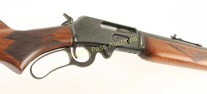 Vintage lever-action repeating rifle chambered in .32 Special, circa 1948-1960. Features a blued finish, 24" JM' marked barrel, 2/3 length tube magazine, ramped & hooded front sight, adjustable rear sporting sight, curved lever, smooth trigger, partially serrated hammer spur, swivel studs, metal forend cap, checkered walnut beavertail forend and semi-pistol grip shoulder stock with factory buttplate. Rifle retains approximately 65% of it's original finish with the majority of it's wear in the form of thinning on the barrel and on the flats of the receiver. Action is smooth, bore is excellent and wood stocks are good as the appear refinished & have a repaired chip to the left of the upper tang. Condition is good to very good. ***C&R Firearm*** ***Modern Firearm***