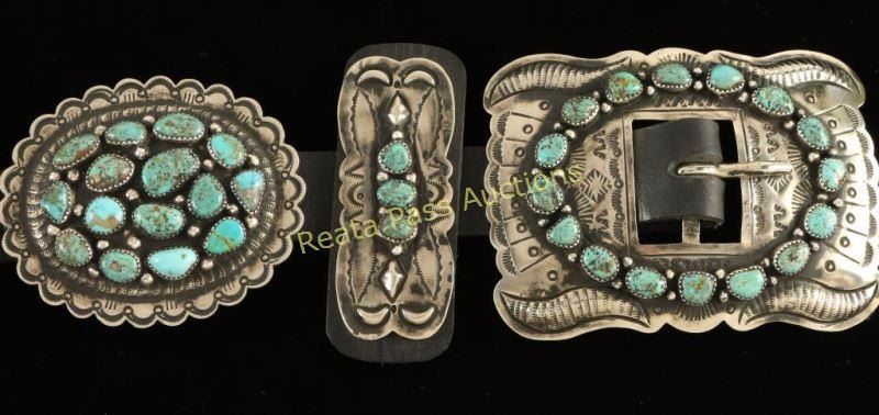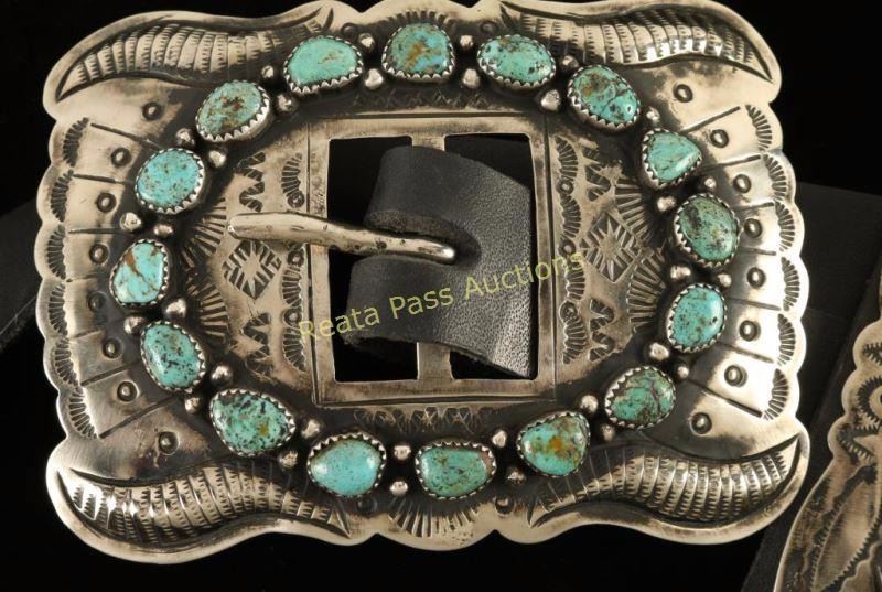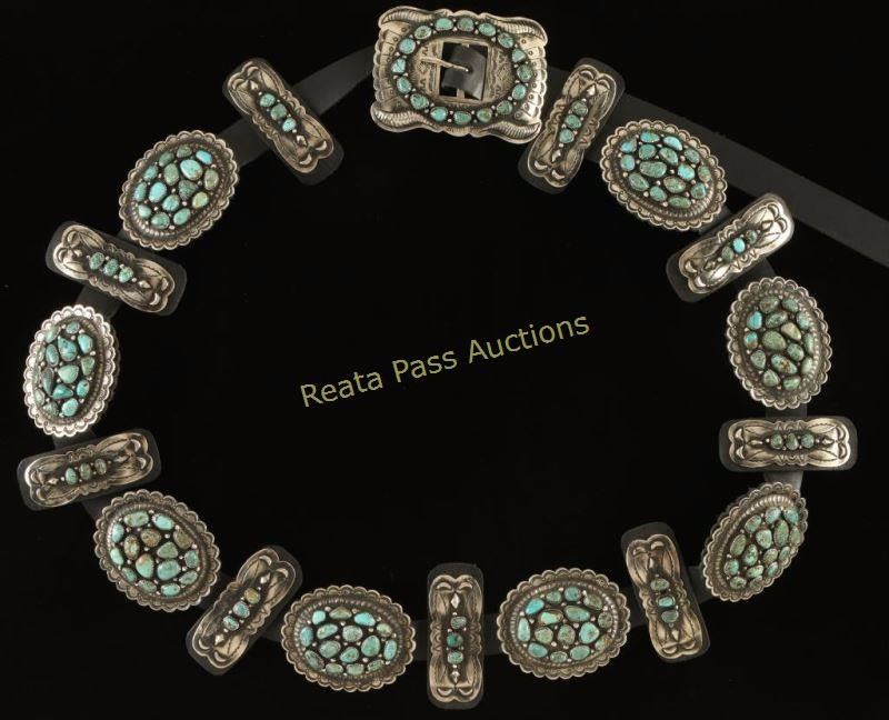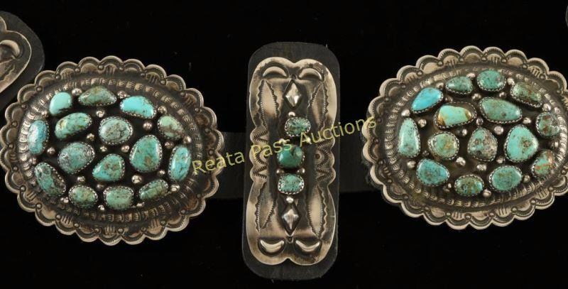 Lot 131 Turquoise Cluster Concho Belt with Navajo Hammered