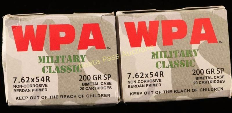 Two boxes of WPA Military Classic 200 Gr SP, 40 Rds total.