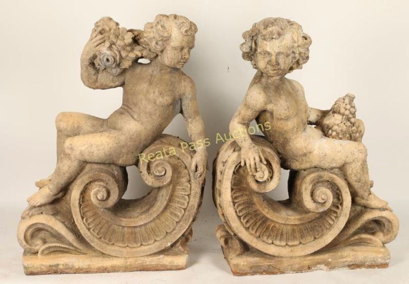 Lot 212 Collection of 2 Concrete Cherubs