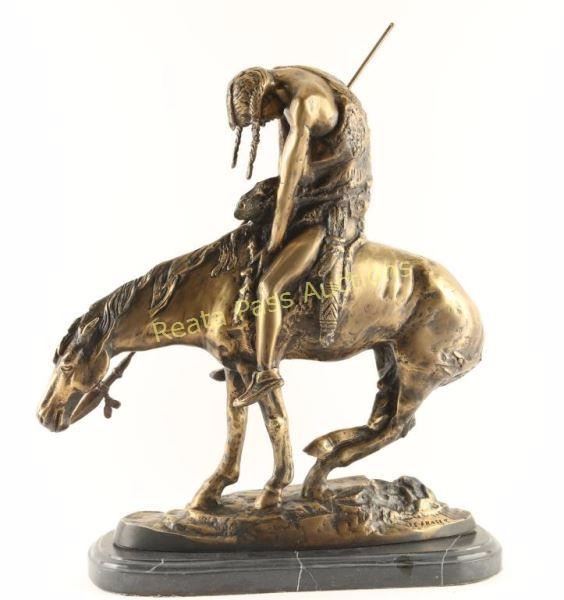 "End of the Trail" on marble base. Measures 20"x17"x5".
