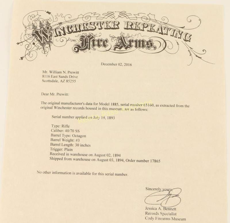 Lot 262a Winchester 1885 .40-70 S.S. SN: 65160