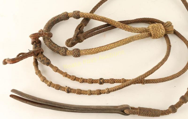 Bozel is two toned rawhide dark brown and tan. Single set of reins which is also two toned. Both are vintage.