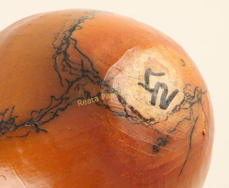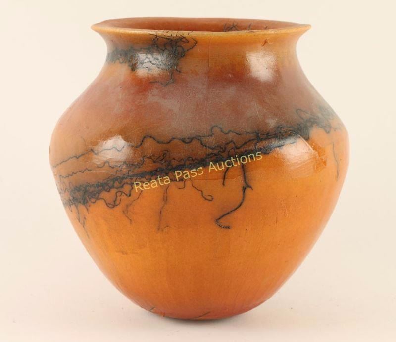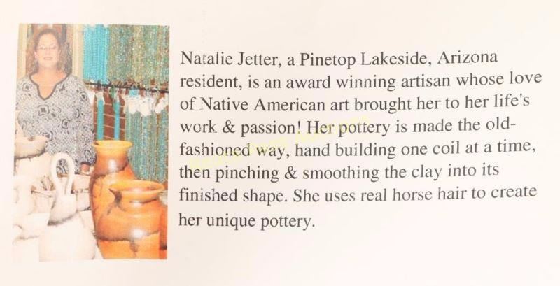Orange and black made by Natalie Jetter of Pinetop Lakeside, AZ. Signed 'NJ' on base. Measures 6 1/2"x5 1/2".