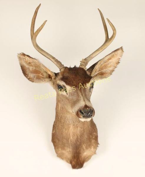 Measures approx. 31"h x 18"w x 19" from end of nose to wall. Losses to top of head, nose and neck.