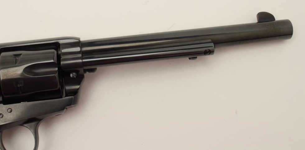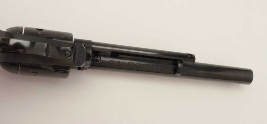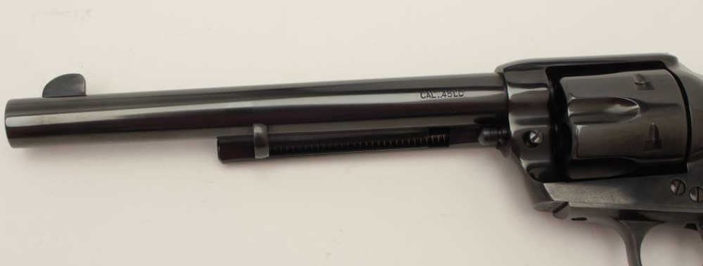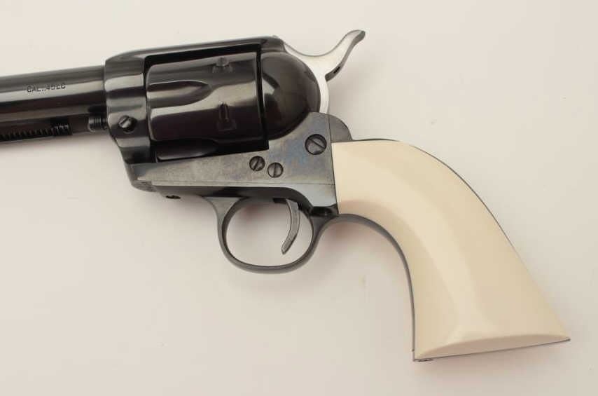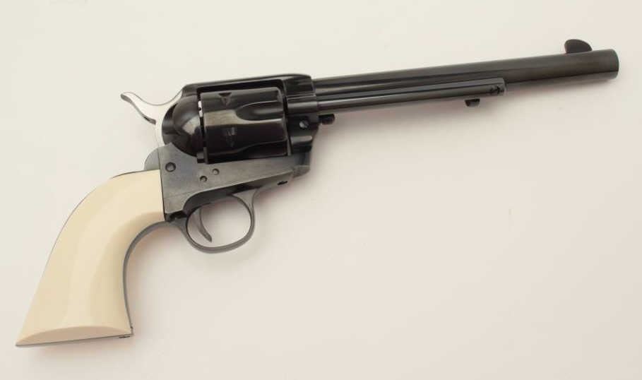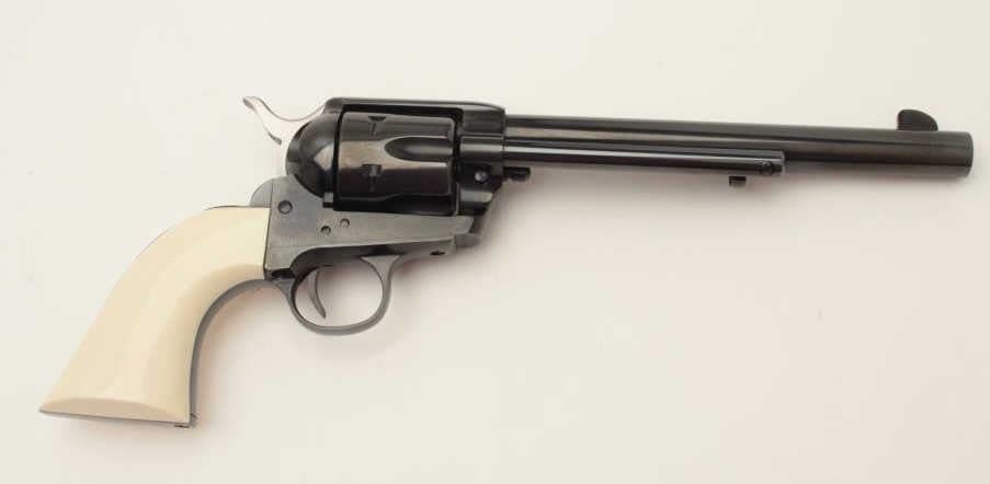 EMF Model Great Western II SAA revolver, .45LC caliber, 7.5” barrel, blued finish, faux ivory grips, S/N E24155, in overall excellent condition showing little handling. (Modern/PPT). Est.: $400-$800.