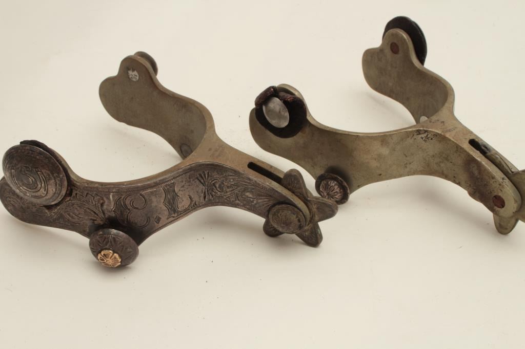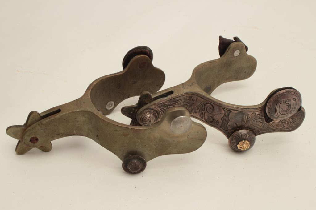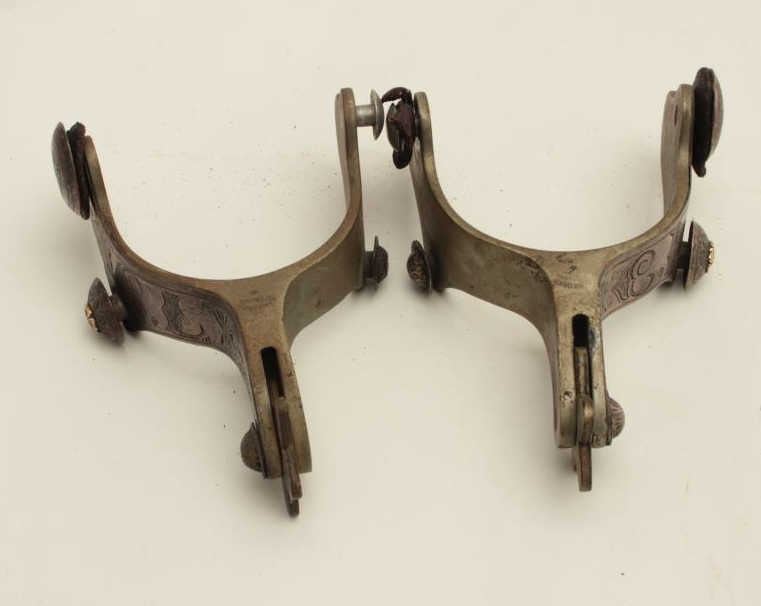 Lot 321 Pair of silver spurs marked “Friedrich” (maker); sterling, 10K; history from the “Lucky 5” Ranch i