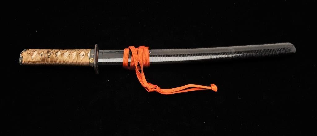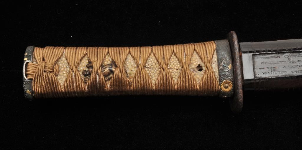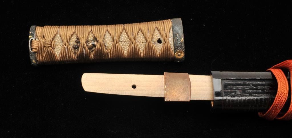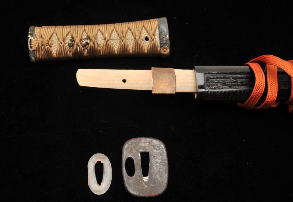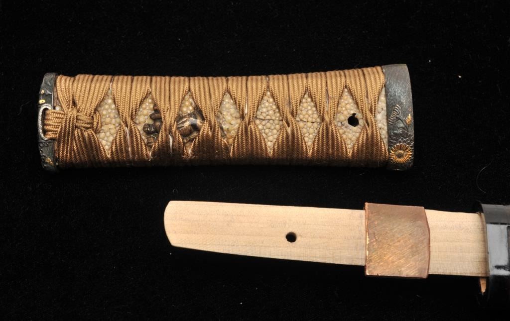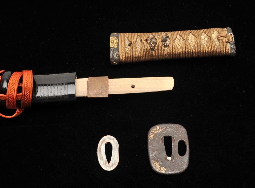 Lot 589 Mountings for a Japanese wakasashi in traditional style. The blade measures 14”-14 ½” and fairly s