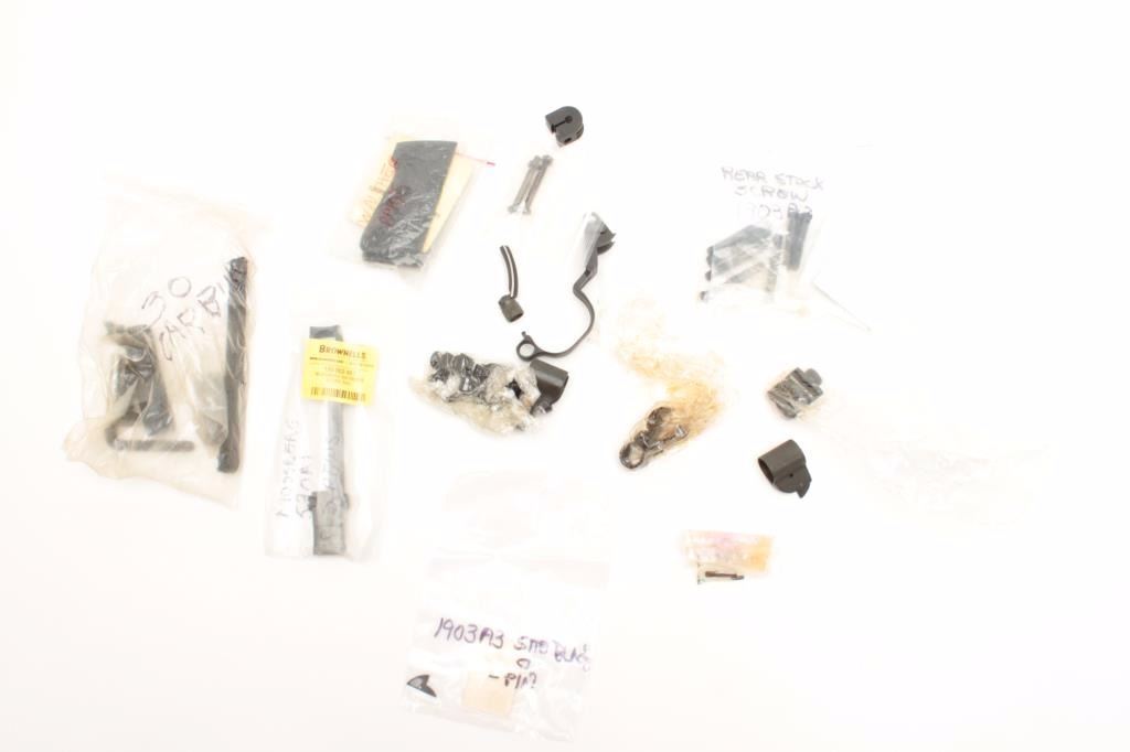 Misc. parts lot including M1 carbine parts, stripper clips, ’03-A3 bolt, etc. Est.: $75-$100.
