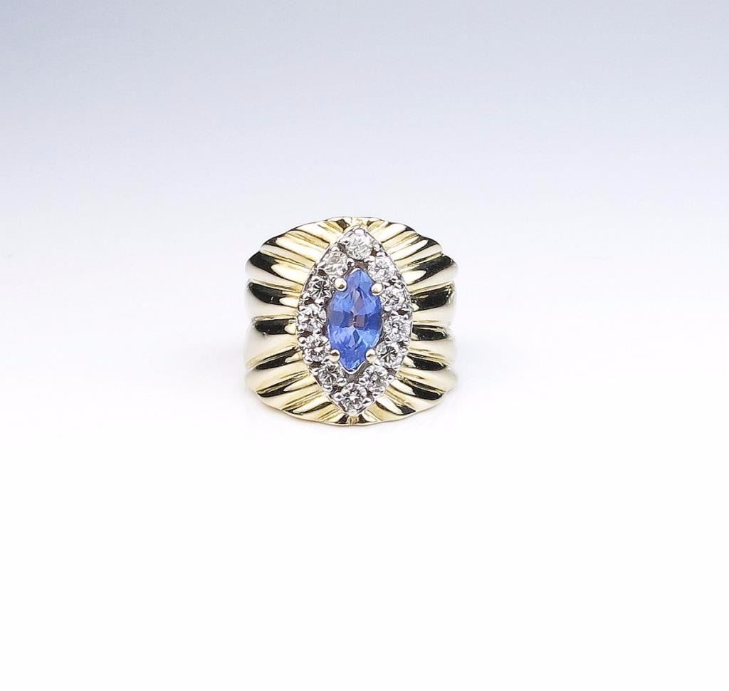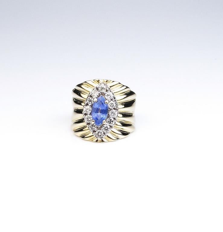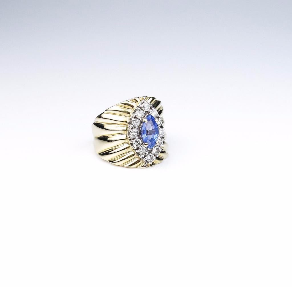 Exquisite LE VIAN ring set with MQ sapphire and round diamonds with a combined weight of approx. 1.50 carats set in a 14 karat yellow gold custom made setting, Retail $2,999.00 Estimates $800-$1,200 Nice