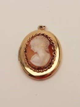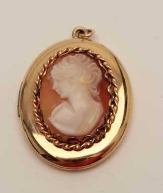 Lot 1769 One beautiful vintage cameo framed in a rose gold twisted wire and mounted on a oval locket Est:$4