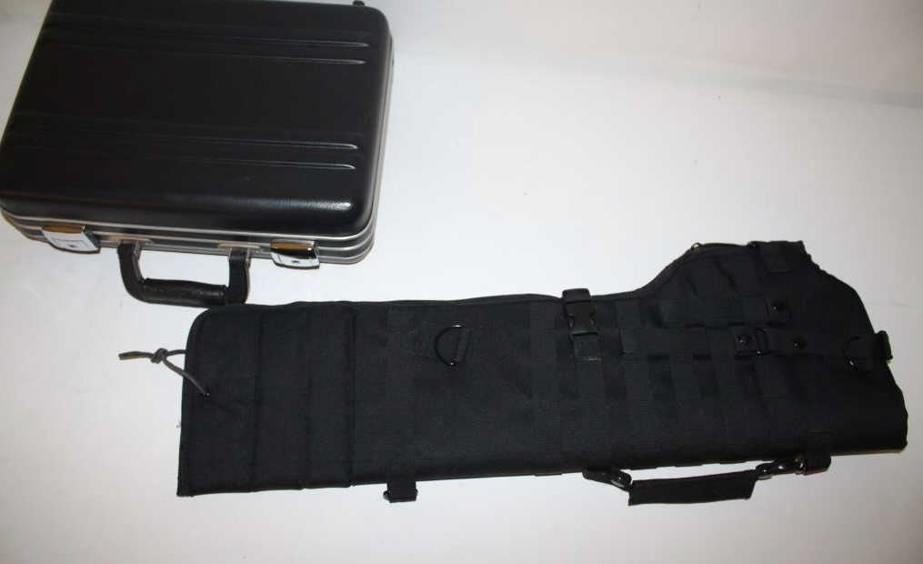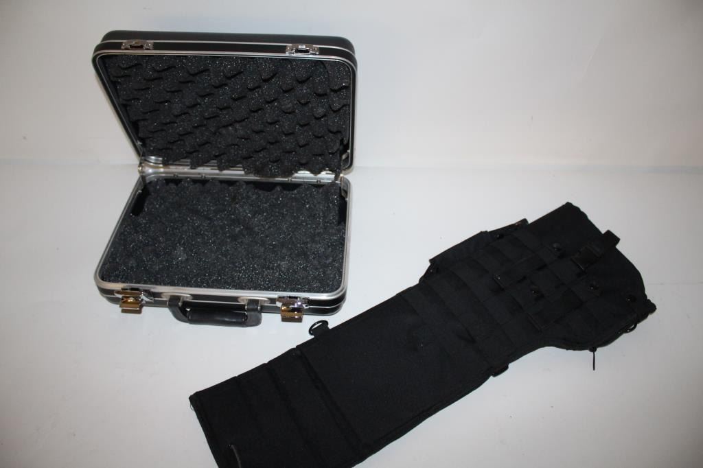 High quality pistol case unmarked in Halburton style along with an AR15 carbine assault case with universal straps. Fine condition. Est.: $50-$100