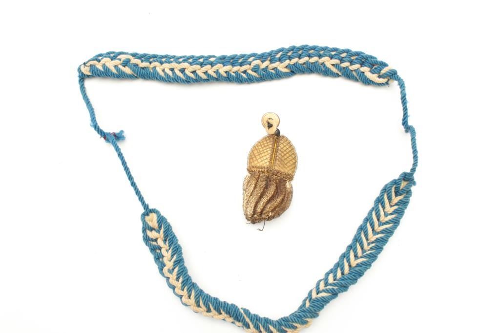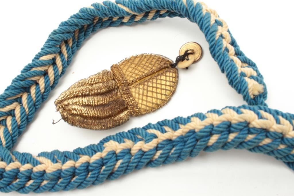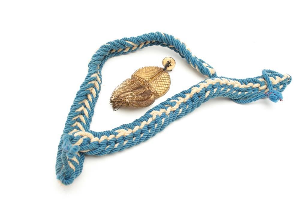 Blue and white braided cord with gold bullion tassel, for U.S. naval cocked hat and aggulette for Officer, possibly British. Est.: $25-$50.