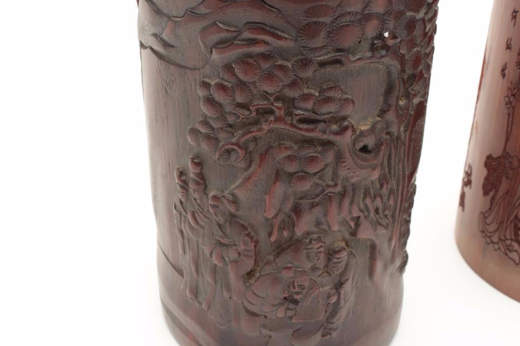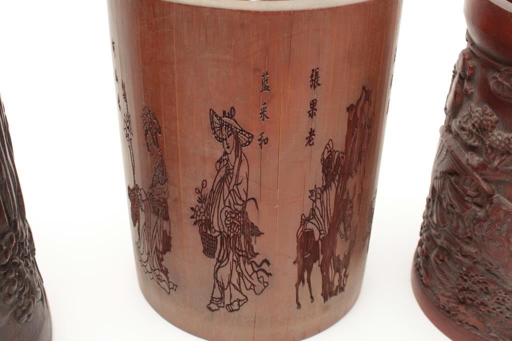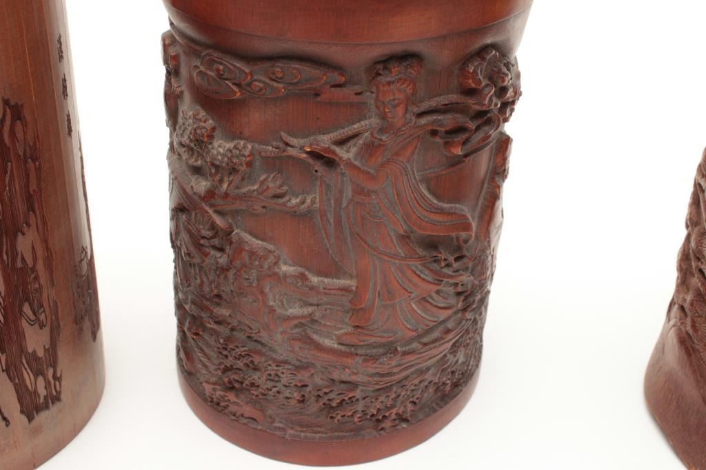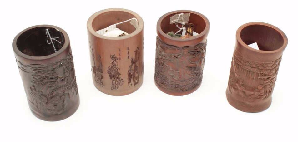 Lot 2059 Lot of four 19th century Japanese brush holders crafted from carved bamboo. The lot includes four