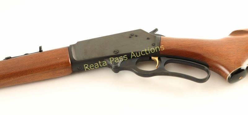 American made lever action repeating rifle chambered in .30-30 Winchester, circa 1980. Features a blued finish, 20.25" 'JM' marked barrel, full length magazine tube, ramped & hooded blade front sight with brass bead, Rock Mountain-style rear sight, drilled & tapped receiver with matte top, smooth gold trigger, serrated hammer spur, curved lever, smooth American walnut semi-beavertail forend and pistol grip shoulder stock with black grip cap & factory buttplate. Rifle exhibits approximately 99% of it's original finish showing only few minor handling marks with no major wear observed. Action is smooth, bore is pristine and wood stocks are fine. Condition is near new. ***Modern Firearm***