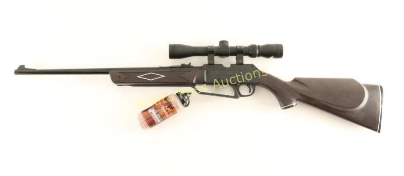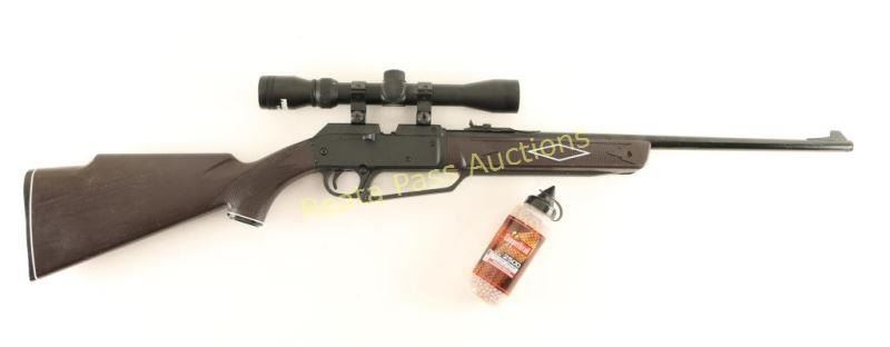 BB rifle, magazine fed, rifled barrel and fitted with 3x9 variable power scope. excellent overall with full canister of BBs.